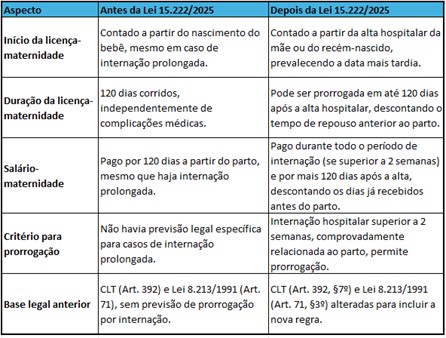 Foi publicada no Diário Oficial da União a Lei nº 15.222/2025, que trata da prorrogação da licença-maternidade em casos de internação hospitalar prolongada, estendendo a licença-maternidade e o salário-maternidade em até 120 dias após a alta, caso a internação de mãe ou bebê exceda duas semanas.
