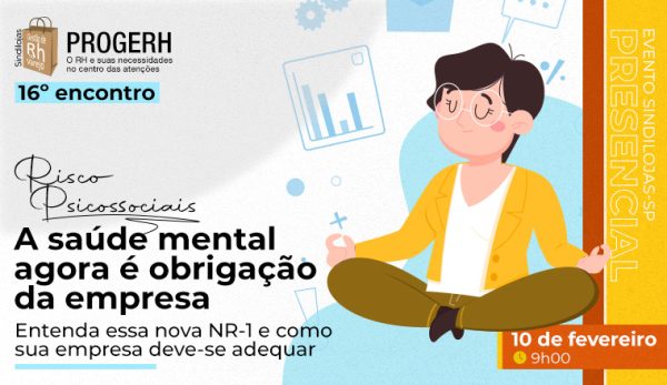 No 16º Encontro do PROGER, vamos apresentar as questões que envolvem a nova NR-1 – Riscos Psicossociais e suas particularidades, explicando quais ações e caminhos as empresas precisarão tomar DESDE JÁ para se adequarem a essa nova exigência da área de saúde ocupacional. Clique no banner abaixo para saber mais e fazer a sua inscrição!