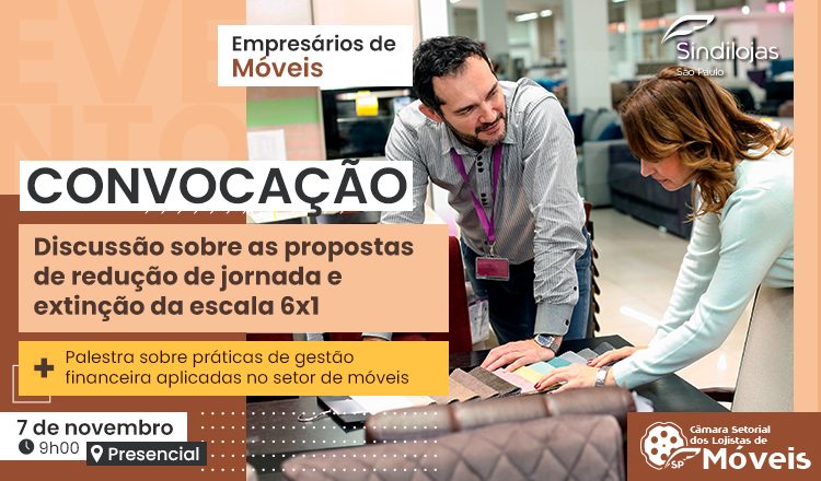 Mudanças nas leis podem impactar os custos e a gestão do seu negócio. Para ajudar você a se preparar e participar das decisões que afetam diretamente o seu negócio, o Sindilojas-SP convida os empresários do setor de MÓVEIS para um encontro exclusivo de discussão e posicionamento.