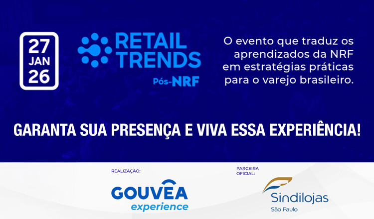 Temos uma grande novidade para compartilhar com você: a SINDILOJAS SP é parceira oficial do Retail Trends: Pós-NRF 2026, o mais relevante e completo Pós-NRF do Brasil, realizado pela Gouvêa Experience.