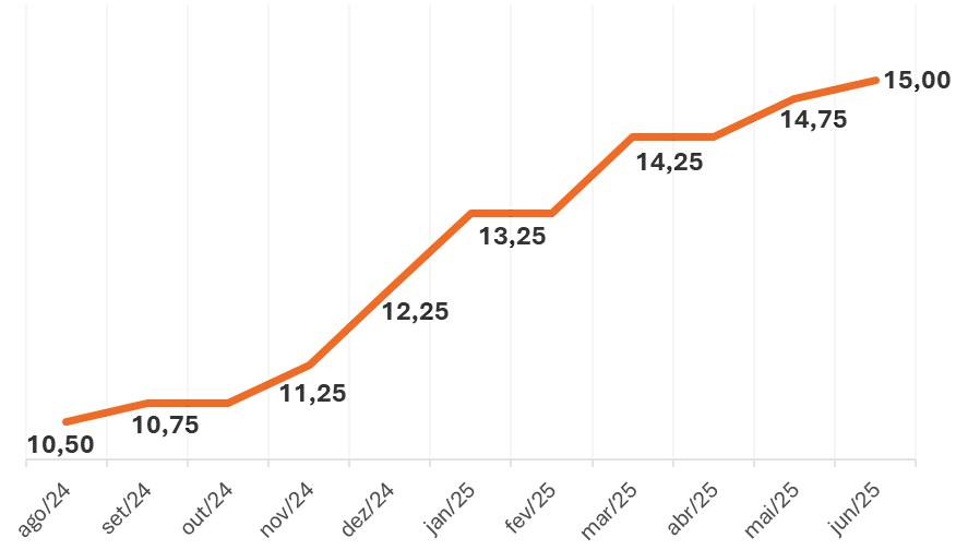 Segundo dados do próprio Banco Central, a taxa de juros das operações de crédito com recursos livres às empresas atingiu, em abril de 2025, uma média de 26% ao ano, o maior patamar desde abril de 2017 (26,38%). Claramente é possível constatar que este indicador seguiu a trajetória da Selic desde o seu início de recentes elevações, em setembro de 2024. Naquele mês, por exemplo, a taxa média para as pessoas jurídicas havia sido de 20,58% ao ano.