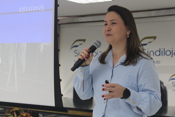 A especialista Sarina Manata, da FecomercioSP, em exposição didática e abrangente, elucidou os principais tópicos do tema em questão, interagindo de maneira ampla com os empresários presentes no esclarecimento das principais dúvidas.