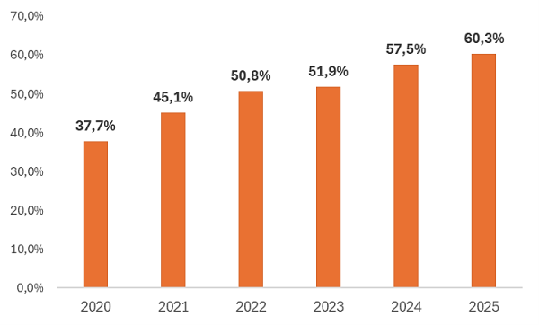 A taxa de rotatividade da mão de obra celetista no varejo paulistano alcançou em 2025 um patamar historicamente elevado, registrando cerca de 60,3% no acumulado anual, o mais alto desde a adoção do Novo Caged (Cadastro Geral de Empregados e Desempregados), em 2020. Esse índice expressa o ritmo intenso de admissões e desligamentos no setor, indicando que mais da metade dos vínculos de trabalho com carteira assinada foi renovada ao longo do ano, um reflexo tanto da alta mobilidade do mercado de trabalho quanto dos desafios operacionais enfrentados pelos varejistas na retenção de funcionários. E é relevante dizer que a taxa de 2025 é quase 60% maior que a vista em 2020, o que demonstra quão aguda foi essa trajetória em apenas seis anos.
