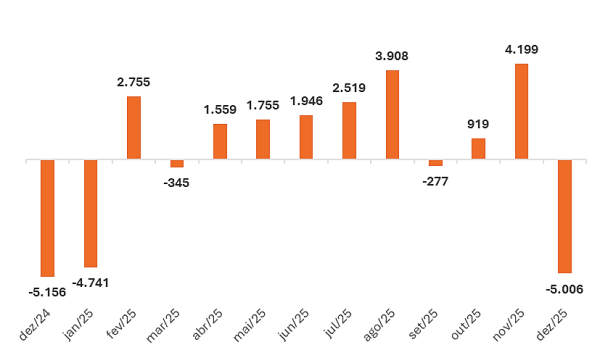 Assim como ocorre tradicionalmente nos últimos meses dos anos, o mercado de trabalho celetista do varejo paulistano encerrou o ano de 2025 com uma extinção de cerca de 5 mil vagas somente no mês de dezembro, patamar próximo do que já havia sido visto em dezembro de 2024 (-5.156 vagas). Ao todo, foram avistadas 23.665 admissões contra 28.671 desligamentos, para um total de 611,1 mil trabalhadores ativos nesta divisão comercial.