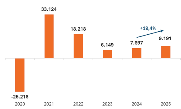 Com este resultado de dezembro consolidado, temos condições de analisar o ano de 2025, ao todo. Nele, foi possível observar que o comércio varejista de São Paulo/SP possuiu uma criação total de 9.191 vagas com carteira assinada, após 372.143 admissões e 362.952 desligamentos. Este foi o melhor resultado dos desde 2022 e representou um aumento de 19,4% em relação a geração de empregos de 2024.