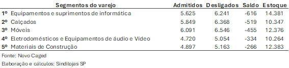 Fonte: Novo Caged / Elaboração e cálculos: Sindilojas-SP