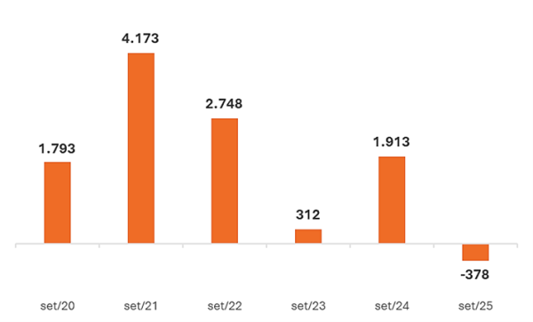 A perda de 378 vagas mostrou-se ser o pior resultado para um mês de setembro no comércio varejista paulistano desde que o Novo Caged foi instituído, a partir de 2020. Daquele ano para cá, em todos os meses de setembro haviam sido registradas mais admissões que desligamentos de trabalhadores, com exceção agora deste nono mês de 2025.