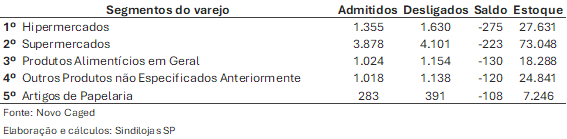 Fonte: Novo Caged / Elaboração e cálculos: Sindilojas SP